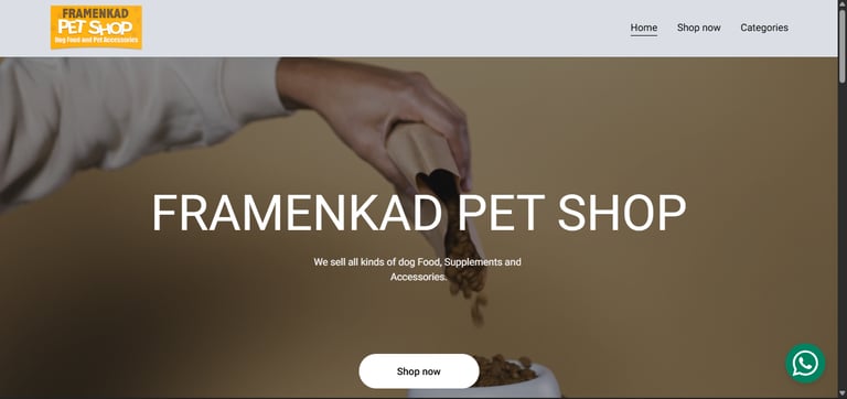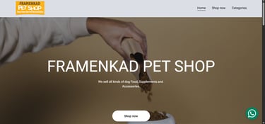 Framenkad Pet Shop is a real client project I built for a pet shop based in Kasoa, Ghana. The business sells dog food, accessories, and supplements previously with no website at all.